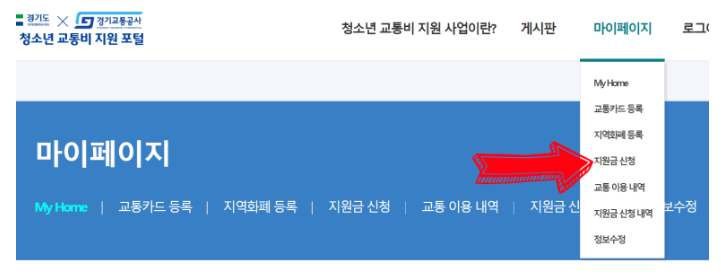 1. 사이트 접속 - 마이페이지 - 지원금 신청